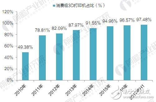 圖表3:2008-2017年全球3D打印機銷售結(jié)構(gòu)(單位:%)