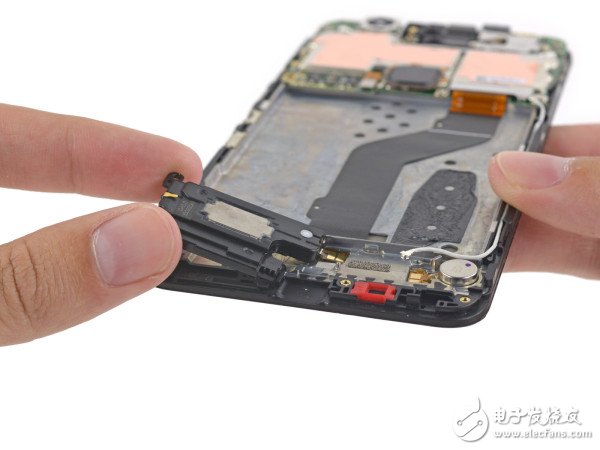 Nexus 6P的揚(yáng)聲器就位于上面這塊子板的一側(cè),與Nexus 6的設(shè)計(jì)相仿。