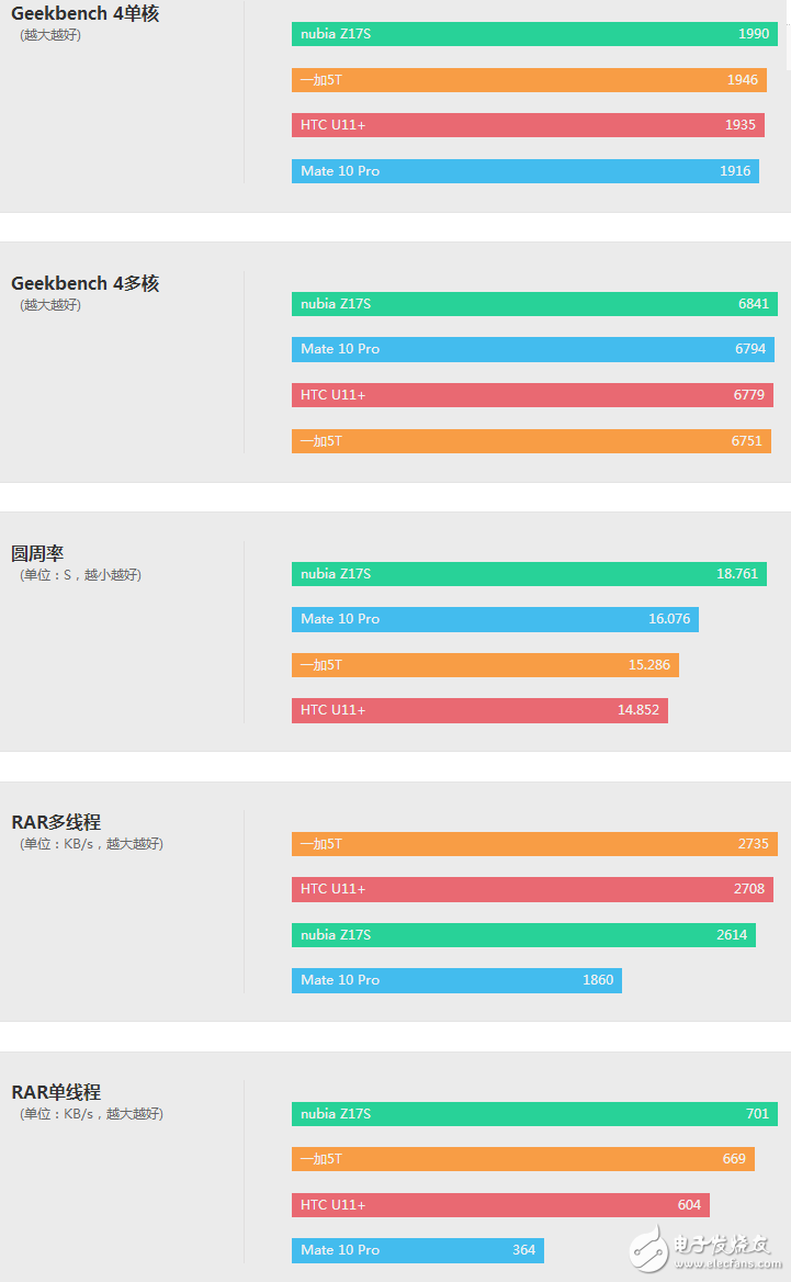 HTC U11+搭載驍龍835,只有6G+128一個(gè)版本。CPU性能屬于中等偏上,調(diào)教比較積極,但內(nèi)存延遲較高;GPU表現(xiàn)還不錯(cuò),和努比亞Z17S和一加5T互有勝負(fù),比較特殊的是它在3DMark中的成績(jī)特別高。