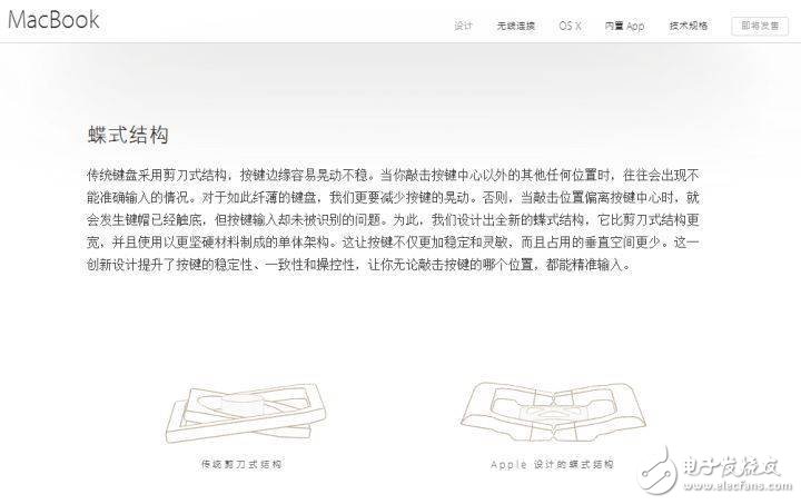 蝶式鍵盤是伴隨 2015 年發(fā)布的 12 英寸 New MacBook 而帶來的新型設(shè)計(jì),為了追求筆記本電腦輕薄的極致,蘋果選擇利用蝶式來代替?zhèn)鹘y(tǒng)的剪刀式鍵盤設(shè)計(jì),這種結(jié)構(gòu)也延續(xù)到了之后的 MacBook Pro 系列產(chǎn)品上。