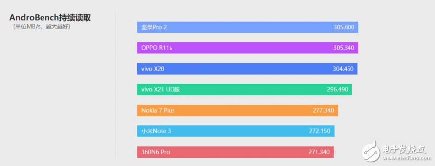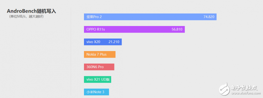 存儲性能方面,由于采用的是eMMC 5.1儲存,因此在讀寫得分并不好看,但也達到了eMMC的正常水準,采用同平臺的機型也有不少采用的是eMMC存儲。
