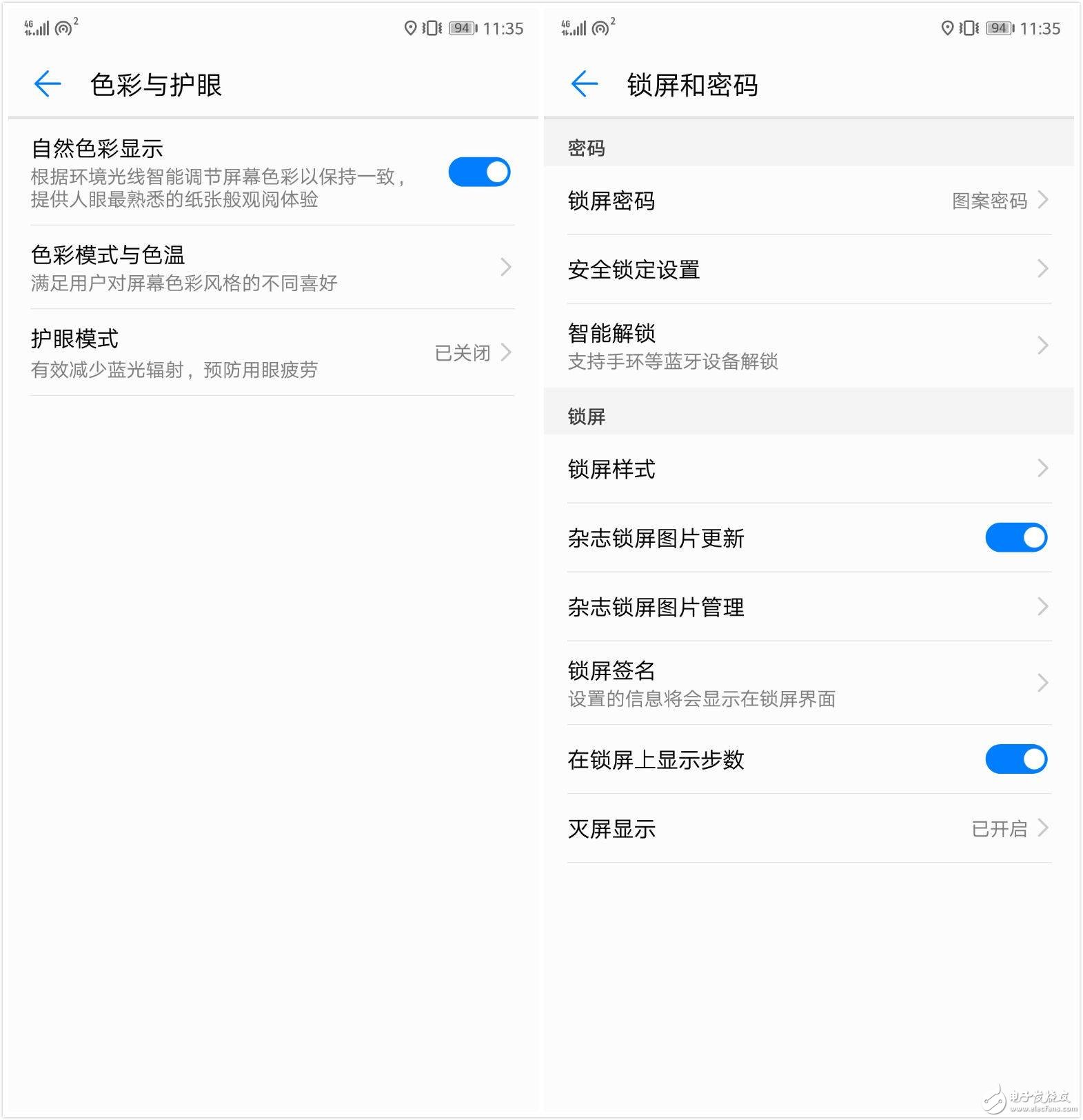 值得一提的是,華為還為 P20 以及 P20 Pro 增加了“自然色彩顯示”功能,可以根據(jù)所在環(huán)境光的色溫,對(duì)屏幕的顏色在一定范圍內(nèi)進(jìn)行調(diào)節(jié),可以一定程度上降低屏幕對(duì)眼睛的刺激。如果你喜歡用手機(jī)看長(zhǎng)篇的文字,這個(gè)功能會(huì)格外地實(shí)用。