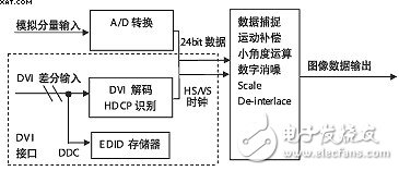 由原理圖看,數(shù)字電視增加DVI接口比較簡單,從硬件電路考慮,一是在接口處增加DVI解碼部分,二是在后端提供一個數(shù)據(jù)通道,如果電視原有方案中具有 A/D轉(zhuǎn)換和相應(yīng)的后級數(shù)據(jù)處理通道,那么DVI接口解碼輸出的數(shù)據(jù)可以與它共用,因為在數(shù)字信號格式一定的情況下,其碼率、行頻、場頻、時鐘是一致的。