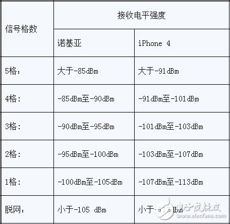 諾基亞手機和iPhone 4信號強度與格數(shù)對比