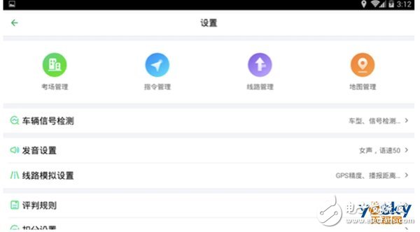 在設置界面中,包括了所有關于軟件方面的相關設置,例如考場管理、指令管理、線路管理、評判規(guī)則等等。