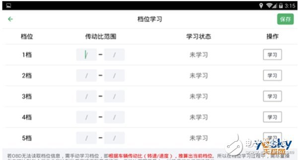 如果教練的訓練車型無法獲取檔位信息,那教練可以進行檔位學習,學習完成后,車輛在行駛過程中能根據(jù)傳動比推算出當前檔位。