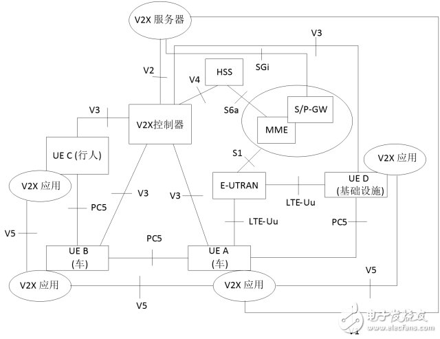 V3:UE和歸屬PLMN中的V2X控制功能之間的接口,適用于基于PC5和基于LTE-Uu的V2X通信,基于LTE-Uu的V2X通信可選支持MBMS。