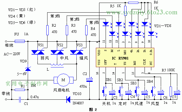 KB型自然風(fēng)定時(shí)控制電扇電路圖