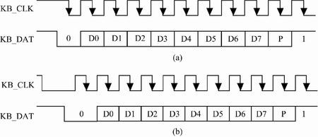 鍵盤接口時序(a) 鍵盤發(fā)送時序;(b) 鍵盤接收時序
