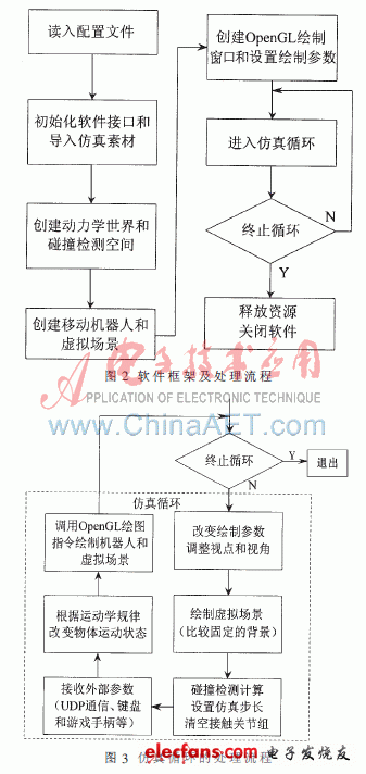 軟件框架及其處理流程如圖2所示,軟件仿真循環(huán)的處理流程如圖3所示,下面簡(jiǎn)述主要處理過程的實(shí)現(xiàn)思路及方法: