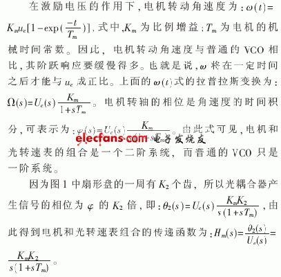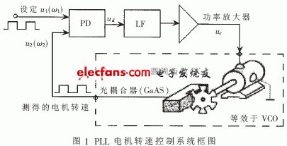 基于鎖相環(huán)的直流電機(jī)轉(zhuǎn)速控制系統(tǒng)實(shí)質(zhì)就是一個(gè)鎖相環(huán),只不過電動(dòng)機(jī)加上光電脈沖編碼器的組合代替了壓控振蕩器。由于直流電動(dòng)機(jī)的外施電壓與電動(dòng)機(jī)轉(zhuǎn)速之間有良
