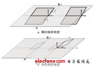 主控制器接收到車體的縱橫向傾斜角度后,需要計算每個千斤頂相對調(diào)整的角度,角度計算的幾何關(guān)系見圖5。