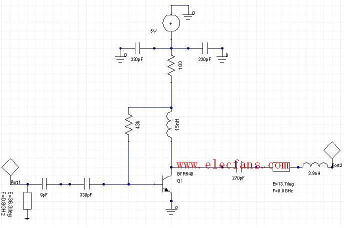 低雜訊放大器電路及分析制作使用飛利浦 BFR-540 NPN電晶體為主要元件,偏壓用于VCC=5V,VCE=4V,IC=10A。進行電路量測所使用理測設(shè)備。包括頻譜分析儀,網(wǎng)絡(luò)分析儀等英,LNA增益值為10。48DB,雜訊指數(shù)為1.56DB,輸入反回損耗值為-10.48d.輸出返回損耗值為-16.35db,功率1db奪縮點為-5.28db,對于一個低雜訊放大器來說,除了雜讀指數(shù),增益及輸入輸出返回損耗等特性外,其非線性之特性也是非常用重要的。