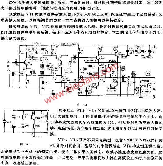 可提供40瓦/8歐姆功率的A類放大器電路