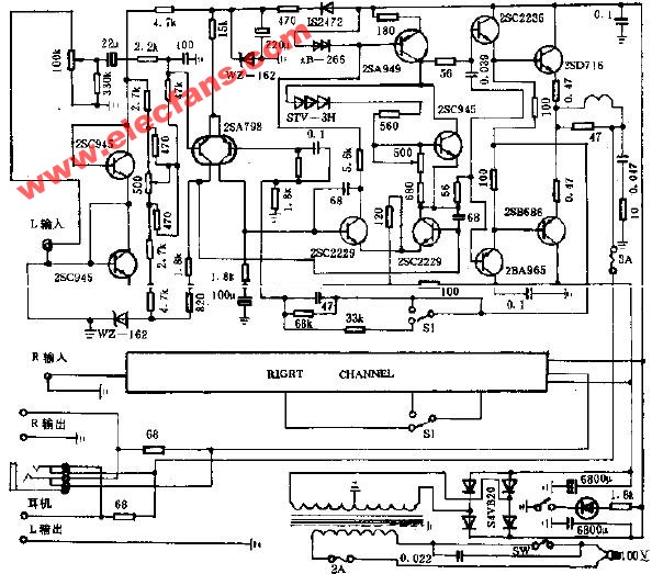 電子發(fā)燒友網(wǎng)>電子技術(shù)應(yīng)用>電路原理圖>放大電路圖>運算放大器電路>日產(chǎn)LUXKIT牌A802型功率放大器電路圖
