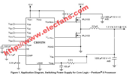 CS5157H CPU 5−Bit Synchronous Buck ControllerThe CS5157H is a 5−bit synchronous dual