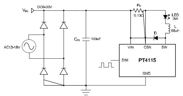 LED驅(qū)動(dòng)IC PT4115:寬調(diào)光比的高亮度LED照明驅(qū)動(dòng)PT4115