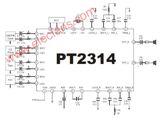 pt2314應(yīng)用電路