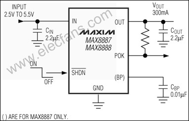 MAX8887, MAX8888 低壓差、300mA線性穩(wěn)壓