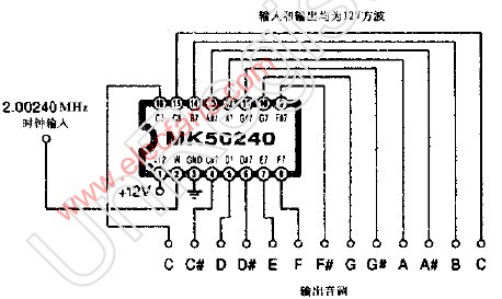 IC連接,KD9561輸出的最高頻率不過為幾千赫茲,TWH8778最高可工作于15千赫茲,因此前者控制后者又不存在數(shù)字信號的處理時間問題,故將兩者相結(jié)合,可構(gòu)成開關(guān)放大式警音發(fā)生器。如用于警車、救護(hù)車、救火車等警報發(fā)生器。