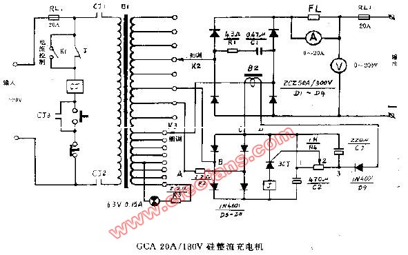 GCA-20A-180V硅整流充電器電路原理圖