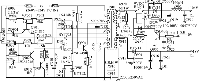 圖1所示為220VAC供電的三洋80P機(jī)芯電源,它早年曾廣泛使用在一些國內(nèi)電視