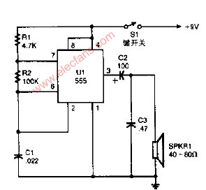 自動(dòng)產(chǎn)生點(diǎn)和劃的電碼練習(xí)振蕩器電路圖
