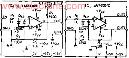 本電路采用兩片通用比較器IC,可用于高速波形處理。