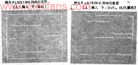 從開路集電極輸出時,可以直接“或”門電路。如用5V邏輯電平,R4連接的電源電壓應(yīng)為+5V。照片A示出了輸入為1V脈沖信號時的輸入、輸出波形?!锾桙c不接地,基準(zhǔn)電壓為+0.5V時,響應(yīng)時間約為58NS。
