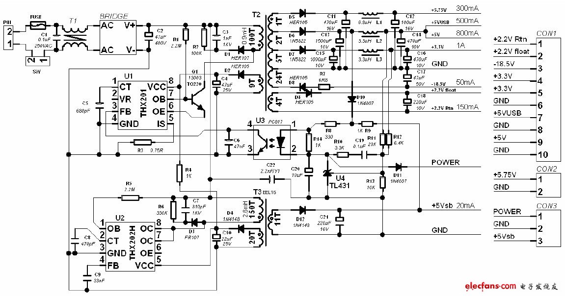 多路輸出的35W機頂盒開關(guān)電源電路