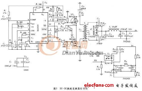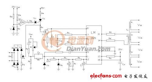 圖2-14是采用SG3525A雙端輸出驅(qū)動