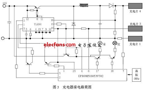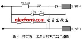 的充電電流相應(yīng)也比較大,對(duì)電池的壽命有較大影響,而且電瓶的耗電量大。圖4 是改造后的充電器座電路圖。