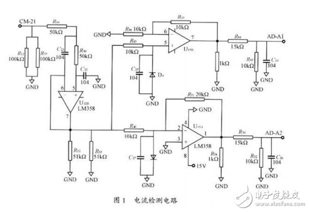 電池充放電電流的大小尤為關(guān)鍵。電路圖如圖 1 所示,因?yàn)槭羌?a target="_blank">檢測(cè)充電電流也檢測(cè)放電電流,故在小電阻上的電壓又是兩個(gè)方向,在電路檢測(cè)中用兩個(gè)通道分別檢測(cè),這樣也便于分別進(jìn)行信號(hào)的調(diào)理,同時(shí)也便于用 A/D 轉(zhuǎn)換器的一個(gè)輸入通道來測(cè)量。