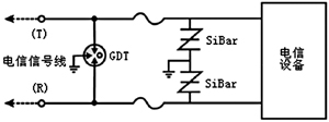 圖6 采用GDT和SiBar的電信設(shè)備雙重協(xié)同保護電路工作原理圖