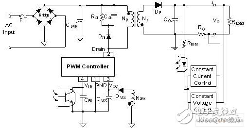 45 電源輸出為5V,1A(5W)的恒壓/恒流(CV/CC)。典型的應(yīng)用包括便攜式音頻播放器、數(shù)碼相機(jī)以及其他需要小巧輕便型AC墻式充電器的產(chǎn)品。介紹了用于便攜式音頻播放器的5W高效率充電器。