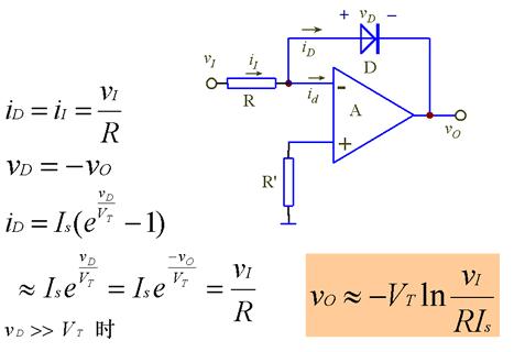 二極管在電流較大時(shí)伏安特性與PN結(jié)伏安特性差別較大,所以運(yùn)算只在較小的電流范圍內(nèi)誤差較小。