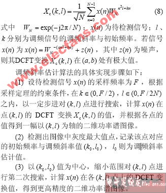 15 現(xiàn)有很多LFM 信號調(diào)頻斜率的分析算法,但這些算法存在諸多不足,如計算復雜、搜索時間長,對多LFM 信號有交叉項等。該文提出了基于雙正交Fourier 變換的新LFM 信號調(diào)頻斜率分析算
