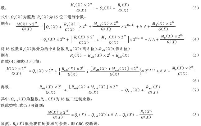 3 CRC 校驗是一種在數(shù)據(jù)通信系統(tǒng)和其它串行傳輸系統(tǒng)中廣泛使用的錯誤檢測手段。通用的CRC 標(biāo)準(zhǔn)有CRC-8、CRC-16、CRC-32、CRC-CCIT,其中在網(wǎng)絡(luò)通信系統(tǒng)中應(yīng)用最廣