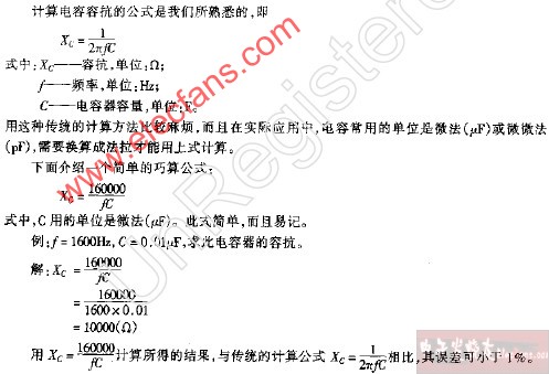 電容器的容抗用XC表示,容抗XC的大小由下列公式計算(通過這一計算公式可以更為全面地理解容抗與頻率、容量之間的關(guān)系):
