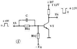 就拿脈沖電路中最常用的反相器電路(圖 1 )來說,從電路形式上看,它和放大電路中的共發(fā)射極電路很相似。在放大電路中,基極電阻 R b2 是接到正電源上以取得基極偏壓;而這個電路中,為了保證電路可靠地截止, R b2 是接到一個負電源上的,而且 R b1 和 R b2 的數(shù)值是按晶體管能可靠地進入飽和區(qū)或止區(qū)的要求計算出來的。不僅如此,為了使晶體管開關速度更快,在基極上還加有加速電容 C ,在脈前沿產生正向尖脈沖可使晶體管快速進入導通并飽和;在脈沖后沿產生負向尖脈沖使晶體管快速進入截止狀態(tài)。除了射極輸出器是個特例,脈沖電路中的晶體管都是工作在開關狀態(tài)的,這是一個特點。
