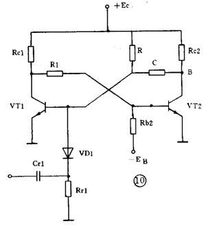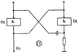 圖 8 中反相器輸出端上就有一個箝位二極管 VD 。如果沒有這個二極管,輸出脈沖高電平應該是 12 伏,現(xiàn)在增加了箝位二極管,輸出脈沖高電平被箝制在 3 伏上。