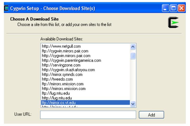 4) 選擇從哪個網(wǎng)址或者服務(wù)器上進(jìn)行下載。