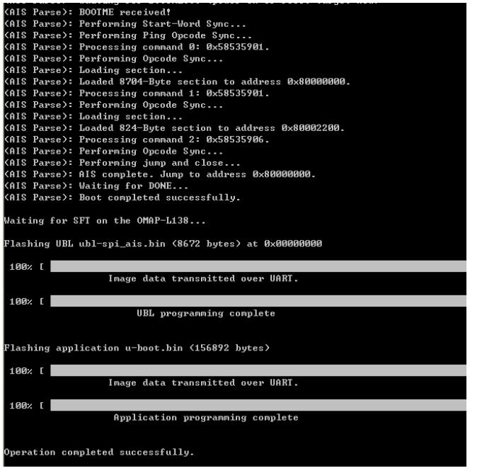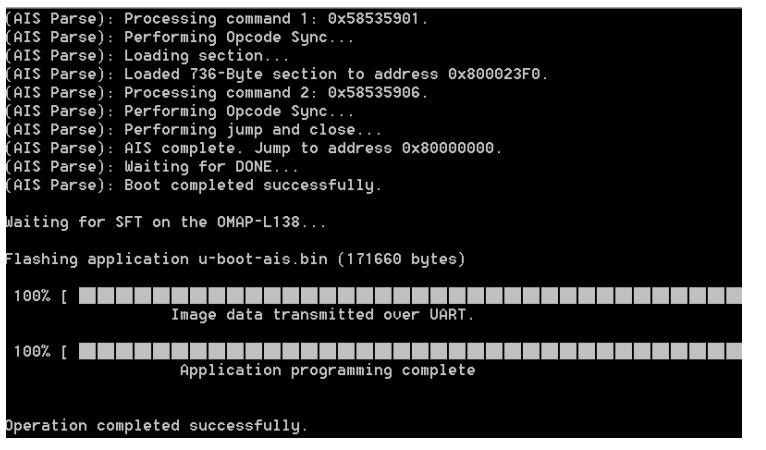 sfh_OMAP-L138.exe –targetType OMAP-L138 –flashType SPI_MEM -flash_noubl u-boot-ais.bin