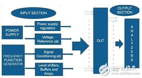 設(shè)計(jì)時(shí)間,而且能提高電路板質(zhì)量,并且提高整個(gè)流程的效率。 一個(gè)典型的待測(cè)設(shè)備(DUT)具有以下一些信號(hào): 待測(cè)設(shè)備在經(jīng)過某些預(yù)調(diào)整后會(huì)有各種各樣的信號(hào),并且有各種模塊,如穩(wěn)壓器、運(yùn)放等,用于信號(hào)調(diào)整