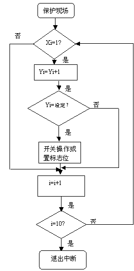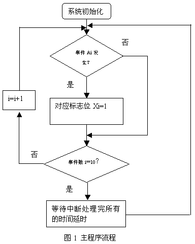 假如A3事件發(fā)生,則對52H內(nèi)存表示的地址單元增加1,使用的指令是“INC 52H”,可以預(yù)先計算事件延時時間與計數(shù)單元數(shù)值的關(guān)系,當(dāng)對應(yīng)的數(shù)值到了預(yù)先設(shè)定的值時,執(zhí)行下一任務(wù)。比如開關(guān)操作等等,并且恢復(fù)初始值以便繼續(xù)循環(huán)控制。這樣可以分別對A1到A7,8個任務(wù)分別計時,時間可以相同也可以不同,具體的情況可以根據(jù)中斷程序中寄存器累計的實(shí)際值與根據(jù)需要所設(shè)定的預(yù)定值比較而實(shí)現(xiàn)。