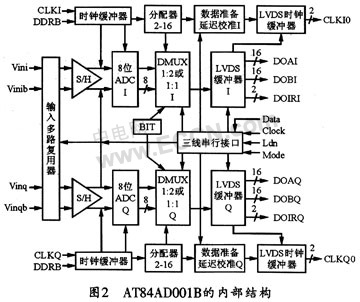 AD轉(zhuǎn)換芯片的廠商主要有ATMEL、MAXIM、Rock-well、ADI、TI等。AT84AD001B就是一款由AT-MEL出品的AD采樣芯片,可支持單/雙通道、單/雙路時鐘控制、及MUX1:1