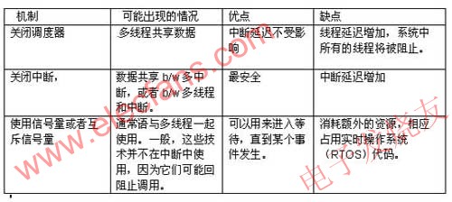 調(diào)試的一個小竅門就是,如果共享的數(shù)據(jù)被破壞,則編程者就應(yīng)當(dāng)首先檢查出任何一種多個線程或者中斷對共享數(shù)據(jù)同時進(jìn)行的操作。如果線程和中斷共享了數(shù)據(jù),那么在線程代碼中必須將中斷關(guān)閉。如果數(shù)據(jù)在多個中斷例程之間共享的話,則中斷也應(yīng)當(dāng)被關(guān)閉,因?yàn)楦邇?yōu)先級的中斷可以搶先于低優(yōu)先級的中斷。