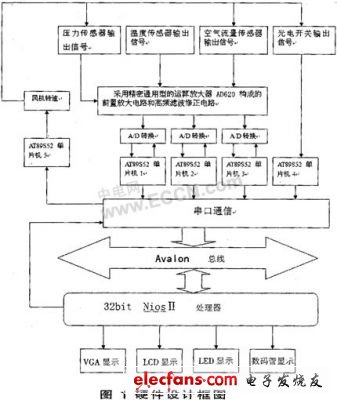 系統(tǒng)的硬件結(jié)構(gòu)如圖2所示。硬件系統(tǒng)的核心是構(gòu)建于Ahera Cyclone FPGA中的Nios II嵌入式軟核處理器。Nios II系列嵌入式處理器是一款通用的RISC結(jié)構(gòu)的CPU,它定位于廣泛