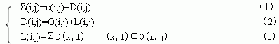 對重要圖的確定主要是通過空間方向樹的多次分裂來實現(xiàn)的。一個三級空間方向樹T(i,j)在初始化時分裂成樹頭結點c(i,j)和剩余集合D(i,j),見公式(1)。對c(i,j)判斷其重要性,若重要則轉到LSP中。對集合D(i,j) 進行重要性測試,若D(i,j)是不重要的,則D(i,j)用一個符號就可以表示出來。若D(i,j)是重要的,則D(i,j)繼續(xù)分裂為兩個集合O(i,j)和L(ij),如公式(2)。對O(i,j)中的每個元素分別進行重要性測試,把重要元素轉到LSP中。對L(i,j)集合進行重要性測試,若L(i,j)不重要,則用一個符號就可以表示該集合,若L(i,j)重要,則L(i,j)分裂為四部分,每部分由相應空間方向樹的位置上的元素構成,每一部分與O(i,j)中的四個元素分別構成四棵新樹,由于每棵新樹的頭結點已經(jīng)判斷,只對新樹的剩余部分也就是L(i,j)分裂出的四個集合即進行判斷,見公式(3) 。如此重復對每棵樹進行分裂和判斷直到找出每棵樹中的所有重要元素,把它們轉到LSP中??梢钥吹絊PIHT算法對重要圖的排序是通過一系列的集合分裂完成的,即一棵樹T(i,j)分裂成頭結點元素c(i,j)和剩余部分D(i,j),對重要的D(i,j)繼續(xù)分裂成頭結點的直接四個孩子O(i,j)和剩余部分L(i,j),對重要的集合L(i,j)再繼續(xù)分裂為四棵新樹的剩余部分。