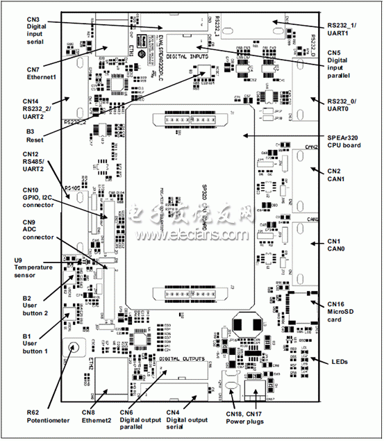 2782 的8路10位ADC和4xPWM定時器.主要用在可編程邏輯控制器,工廠自動化和打印機.而EVALSPEAr320PLC評估板包括CPU板和MII模式應用板.